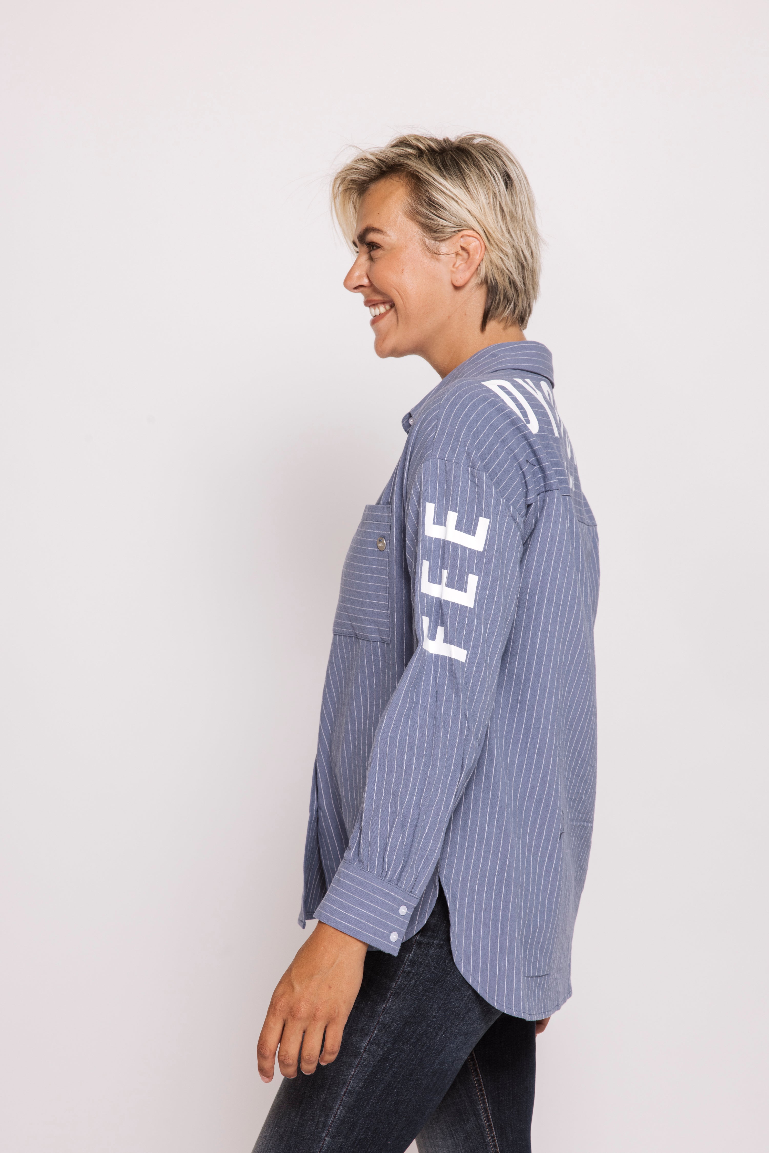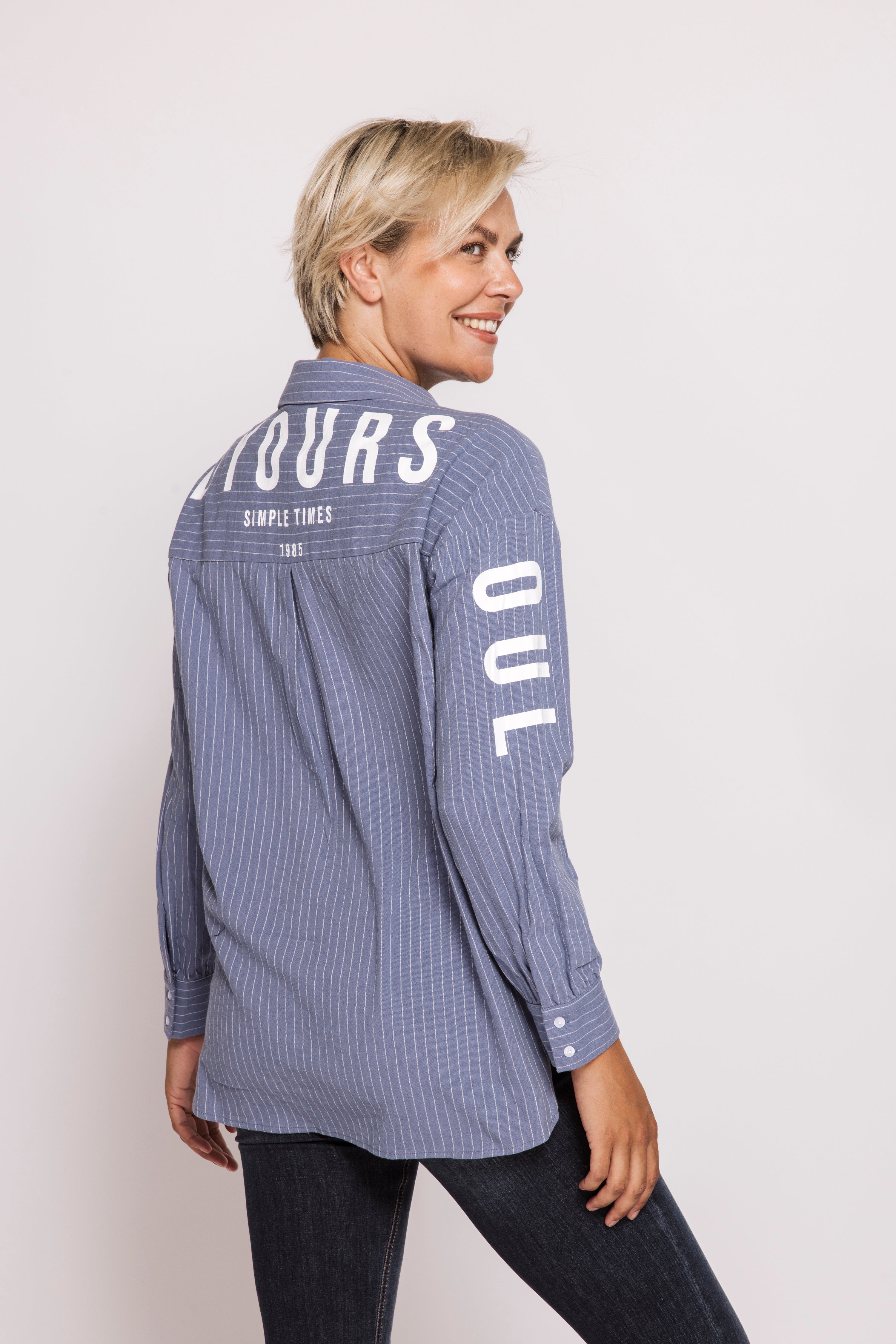 • Muster: Nadelstreifen mit Schriftprint