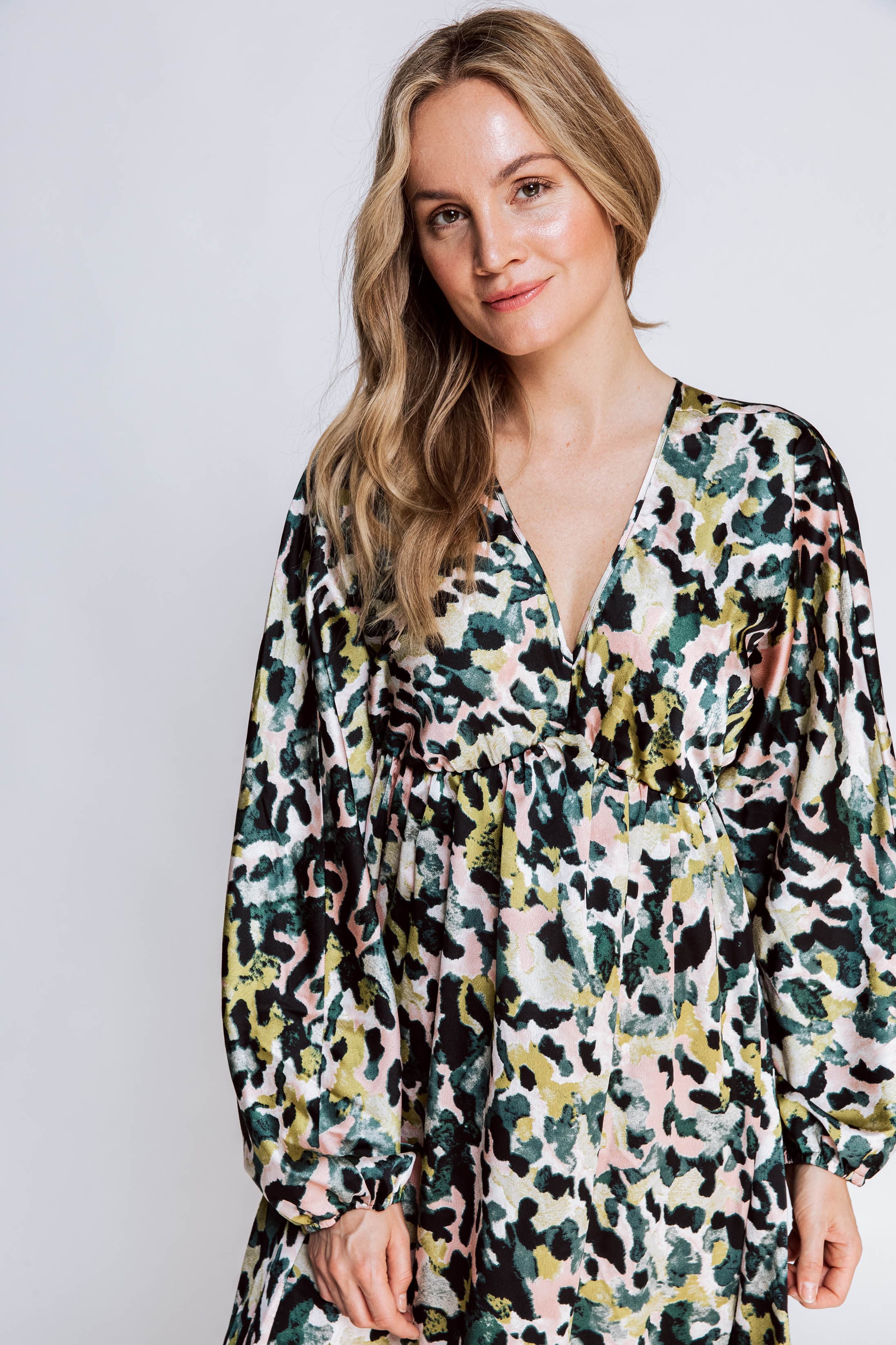 - Details: Raffinierte Faltenlegung im Brust- und Taillenbereich für einen eleganten Look