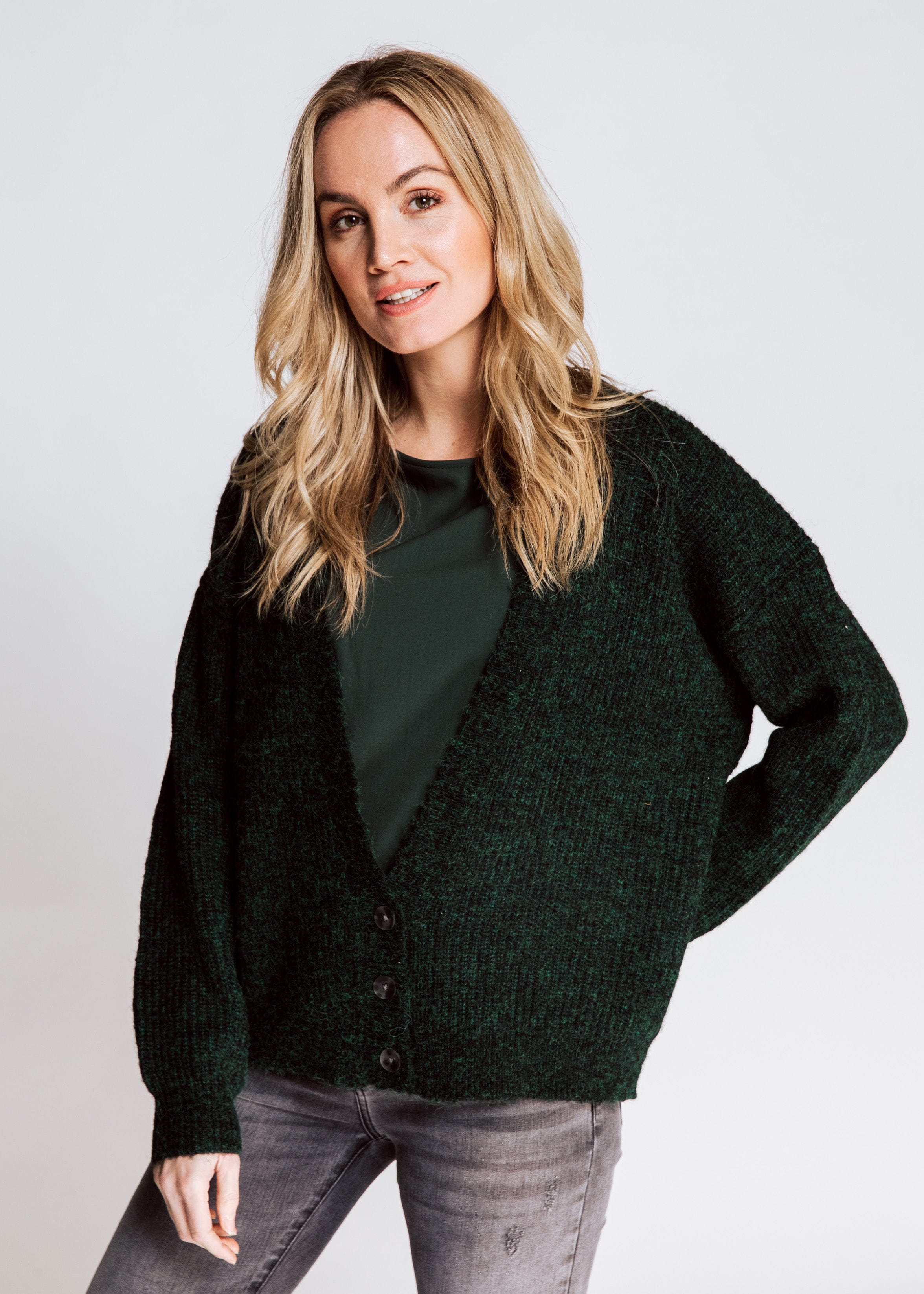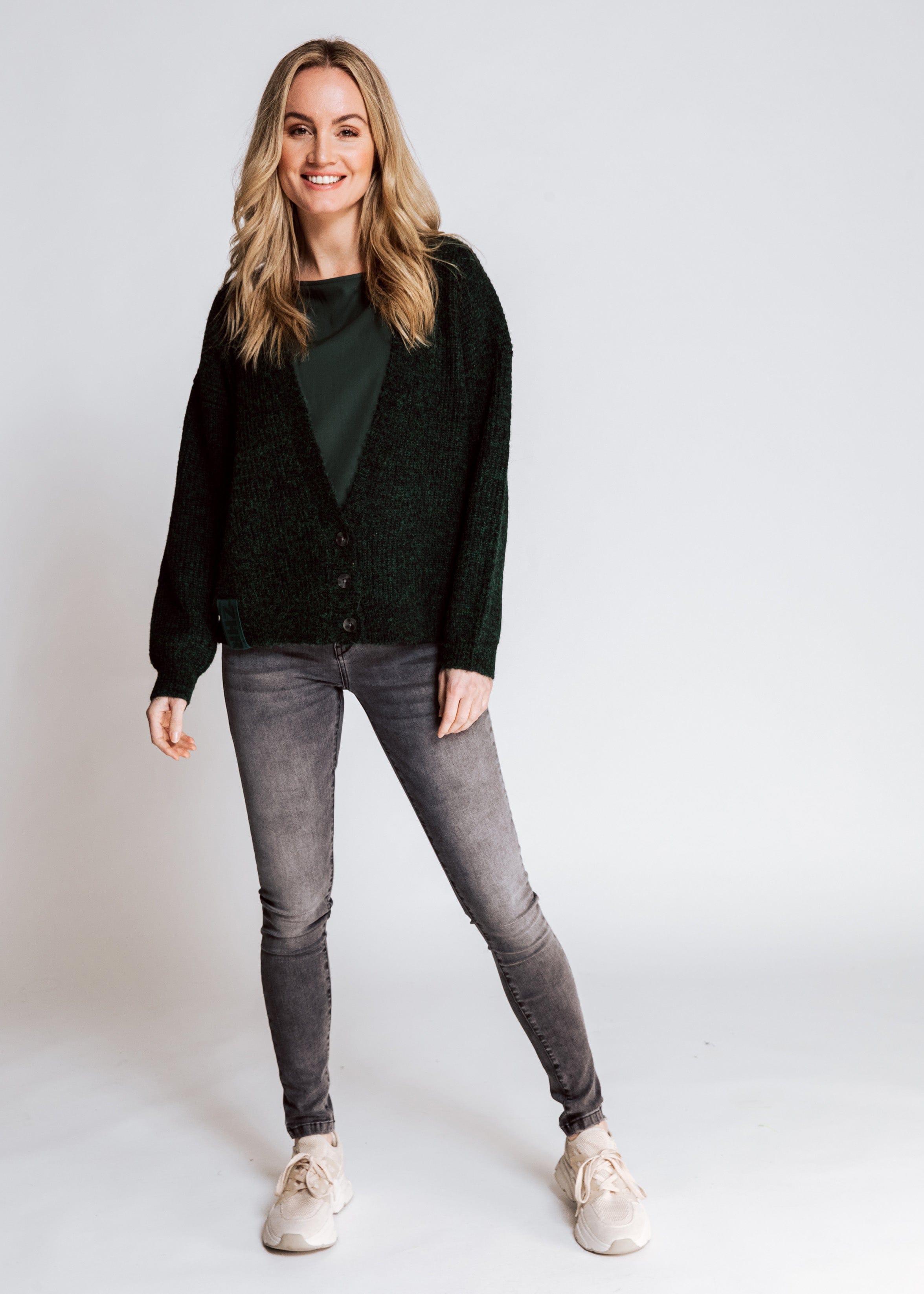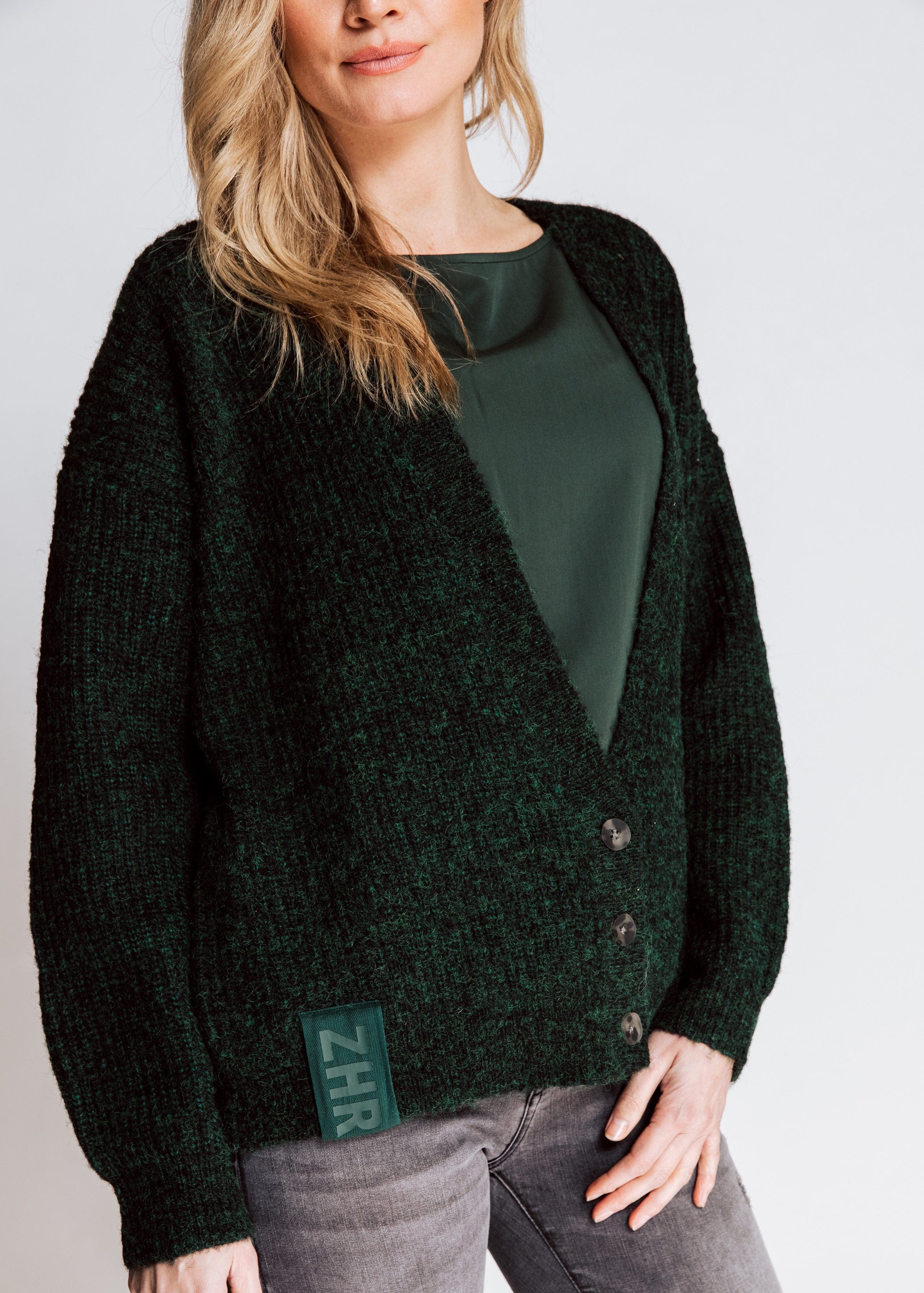 Details: Feinstrickoptik - Logo Patch am Saum - Knopfleiste mit 3 Knöpfen