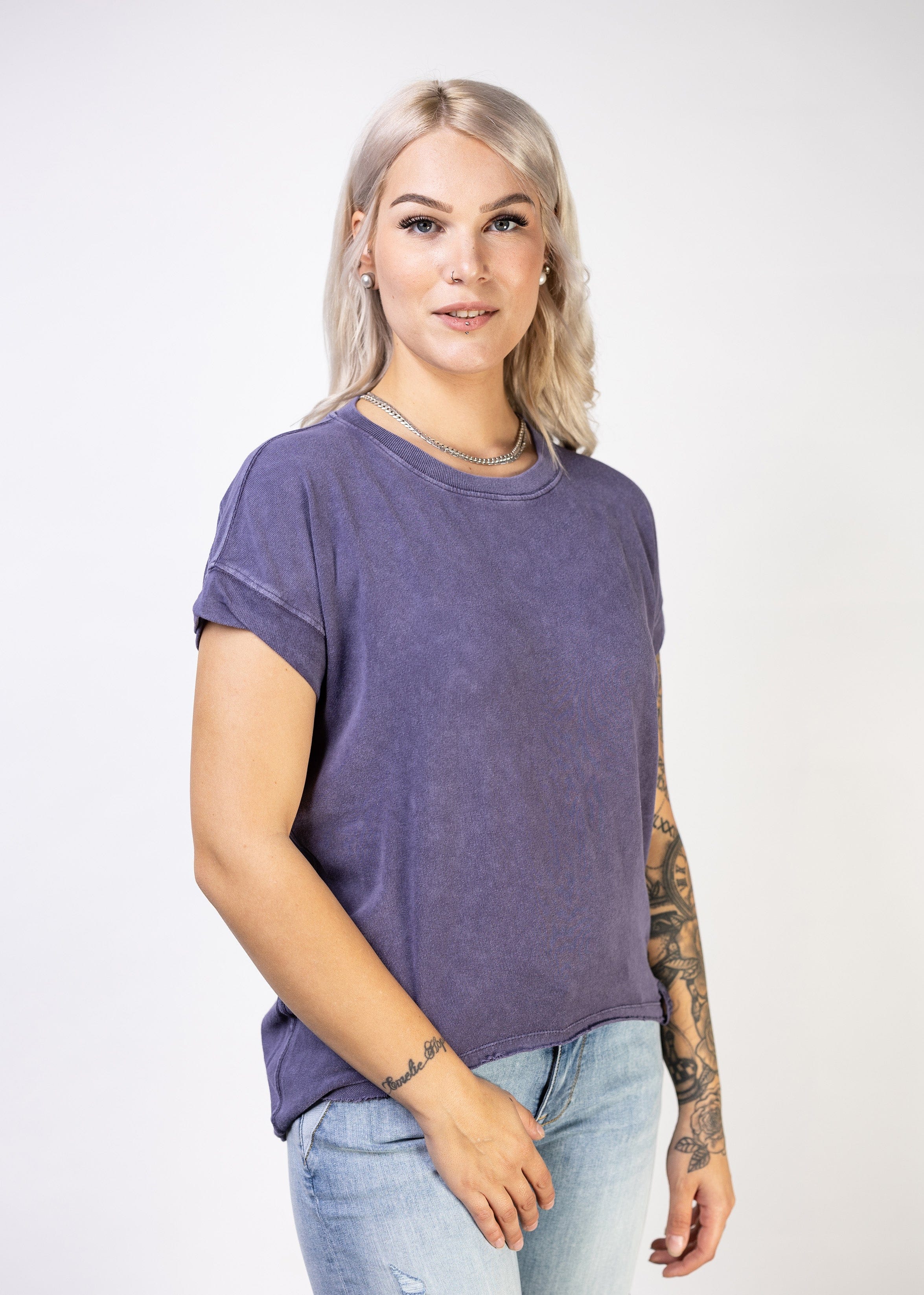- Rundhalsausschnitt mit Ziernaht