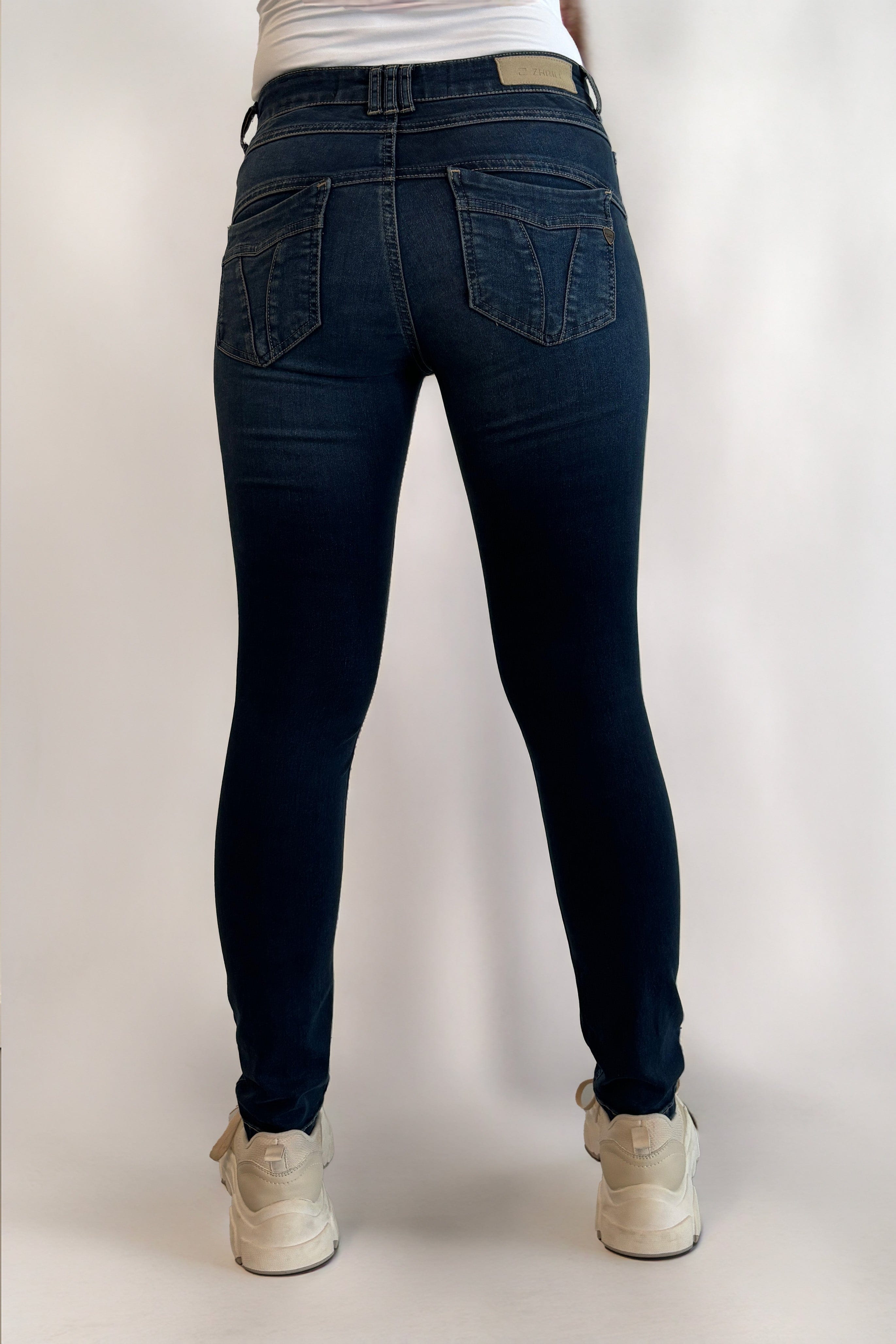 - Zwei Gesäßtaschen und zwei Eingrifftaschen vorne
