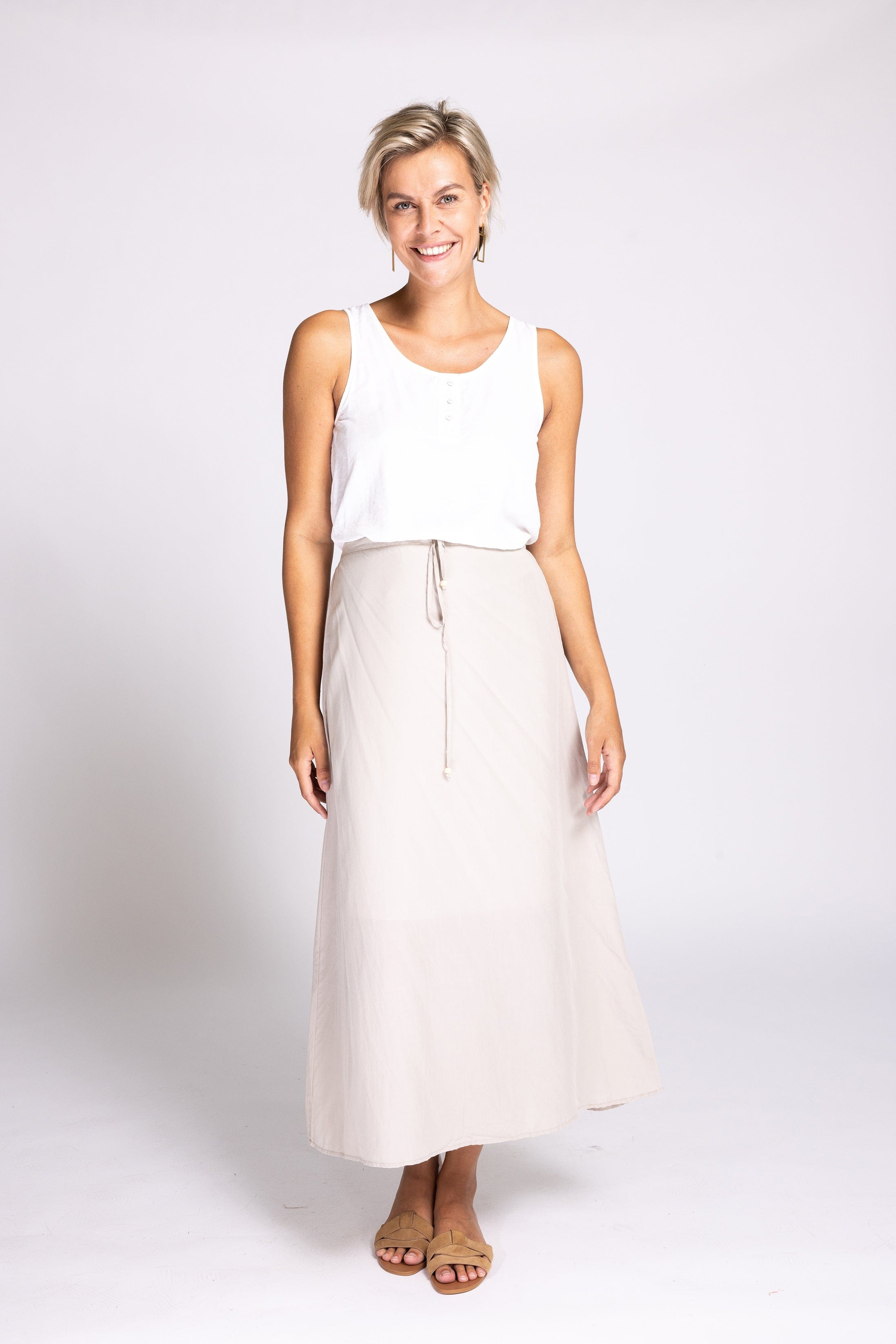 - Rundhalsausschnitt mit kurzer Knopfleiste für einen femininen Akzent