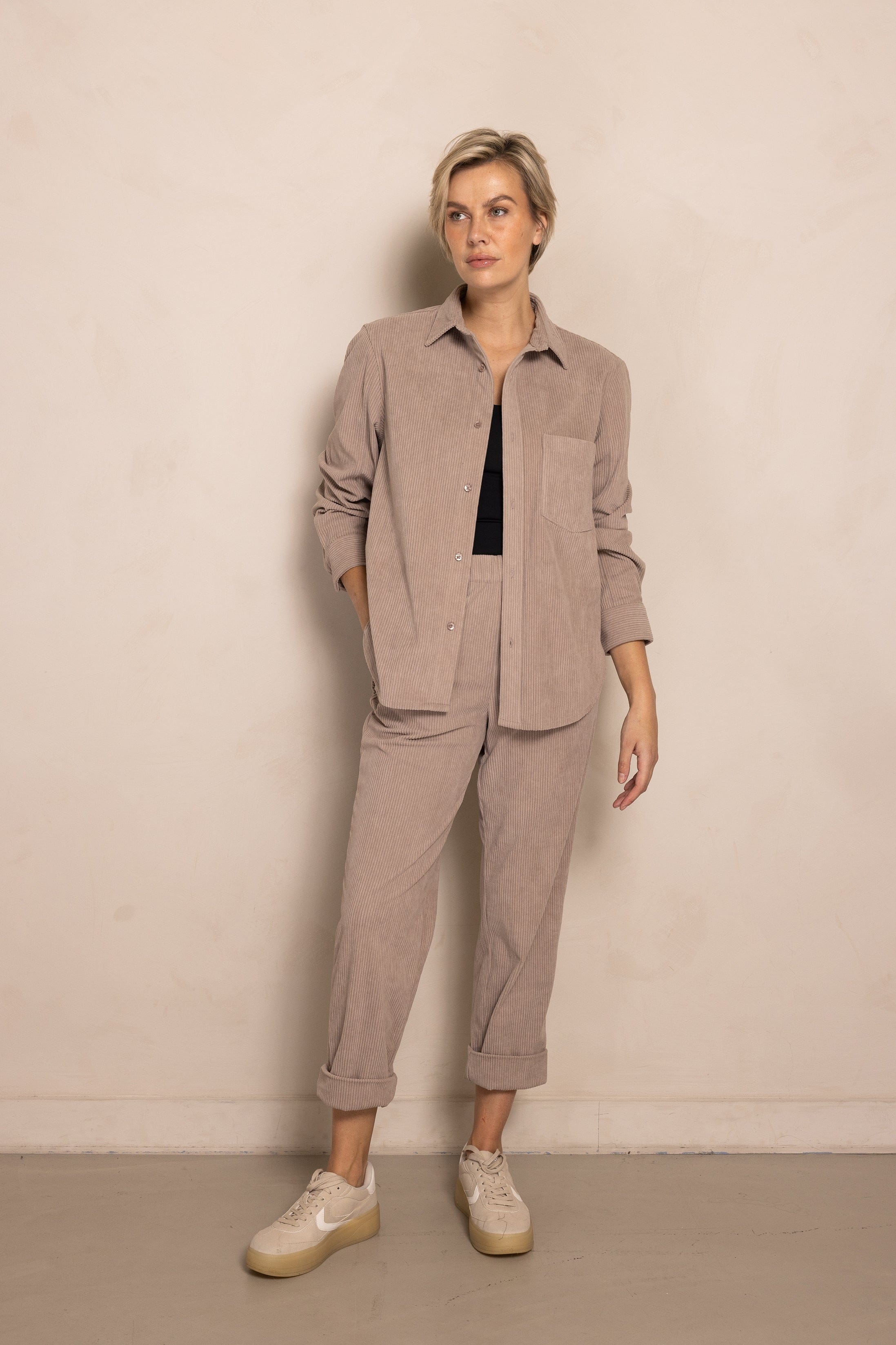 - Muster: Unifarben mit feiner Cordstruktur