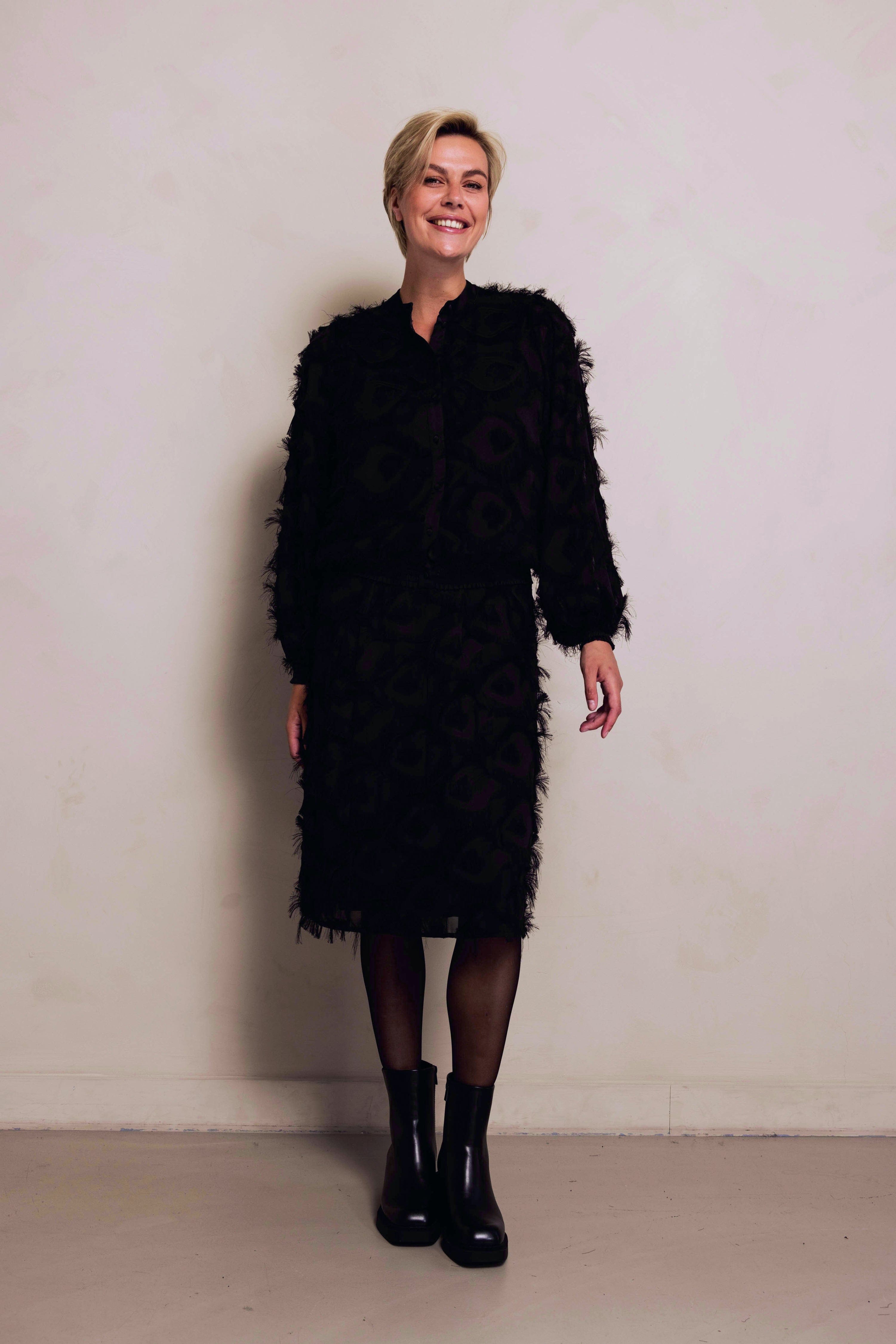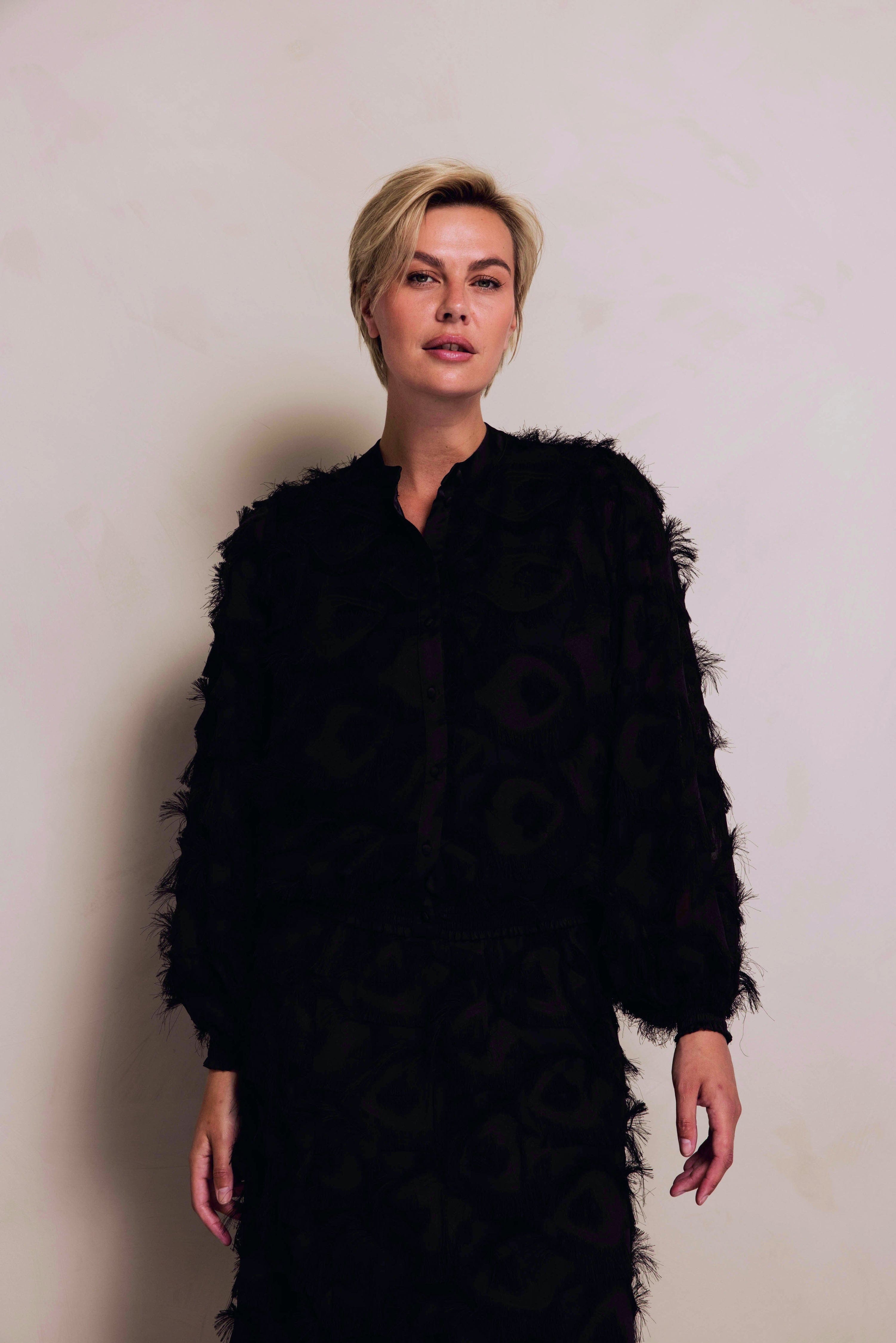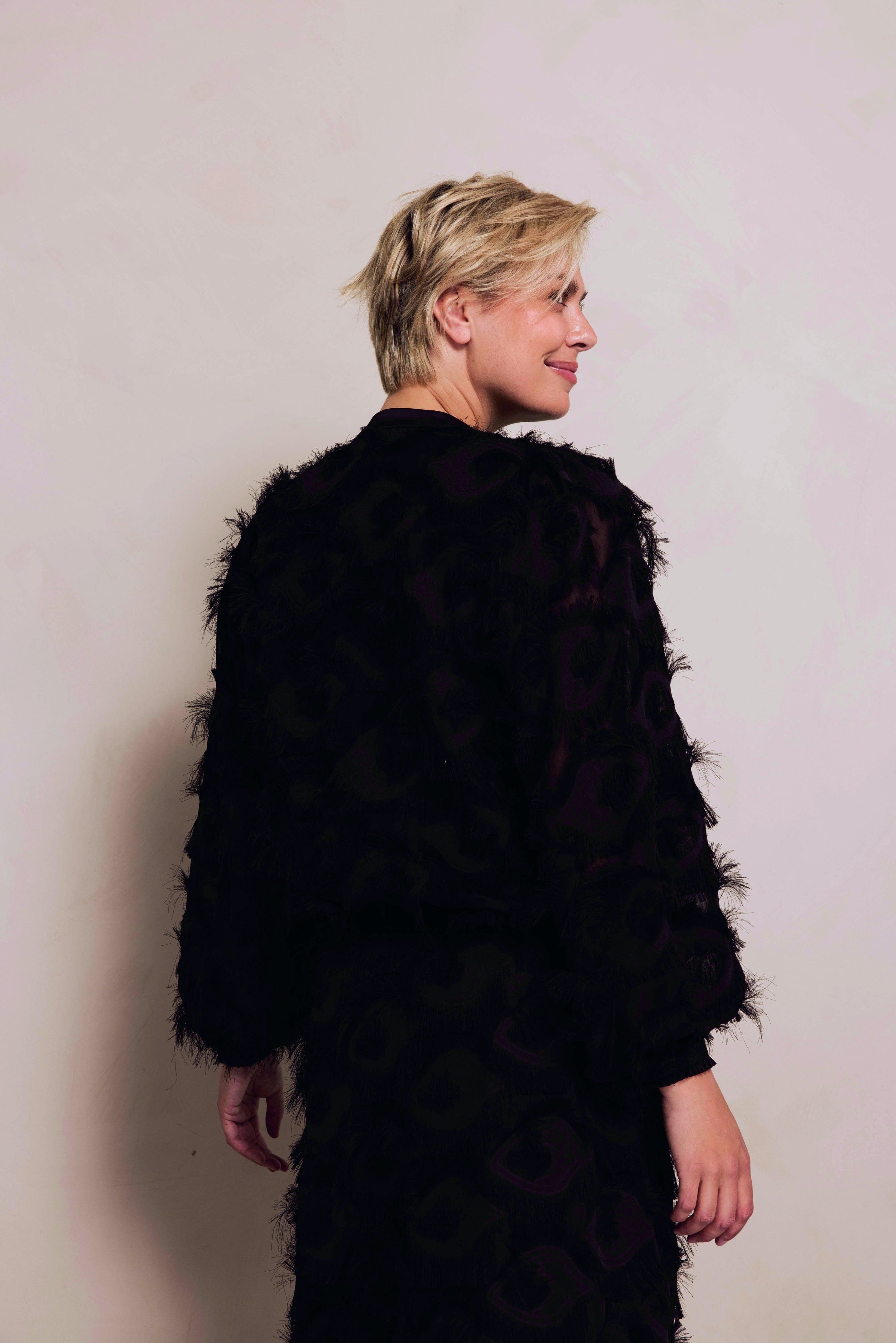 - Muster: Animal-inspirierter Jacquard mit Fransenstruktur