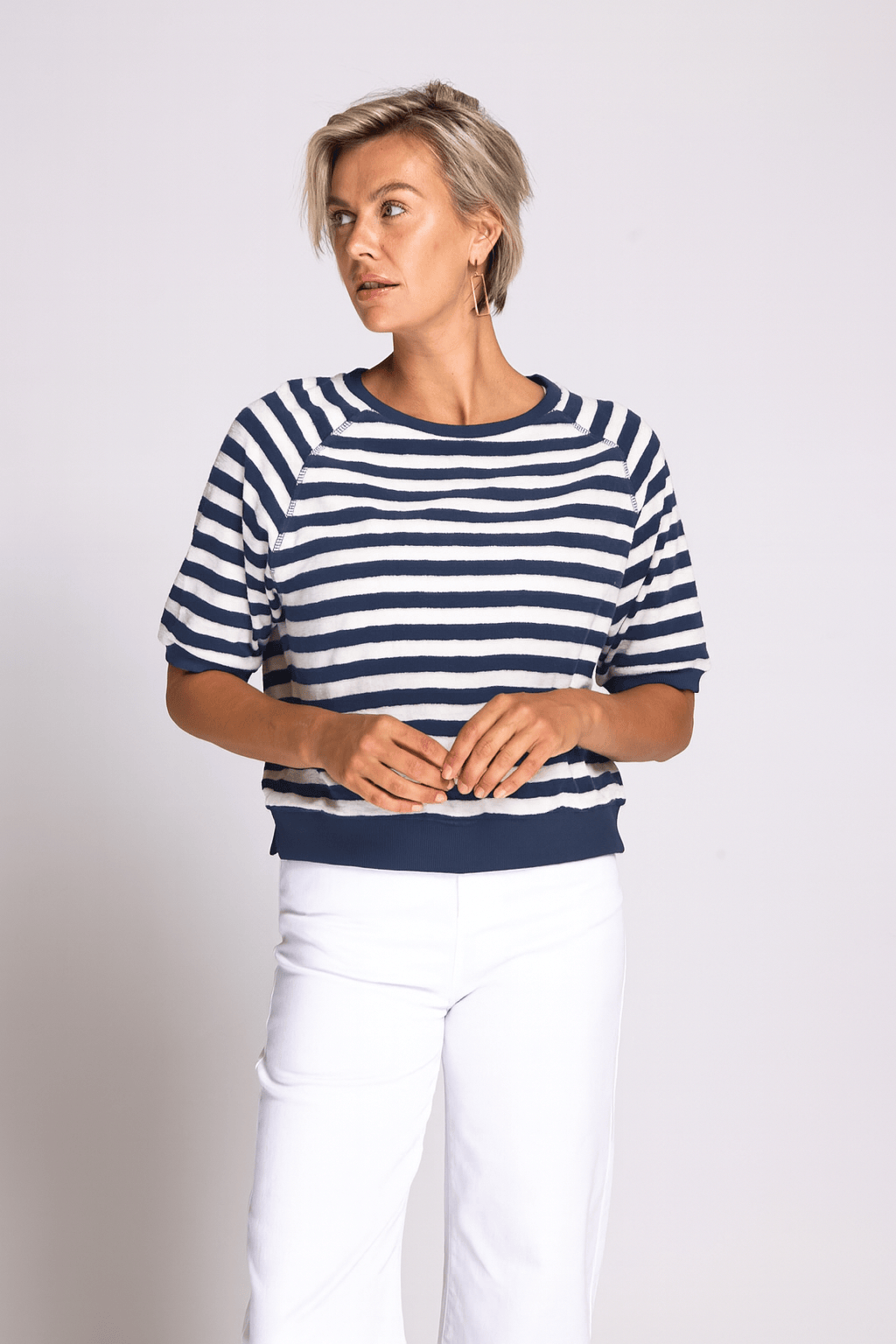 - Rippbündchen an Saum und Ärmeln