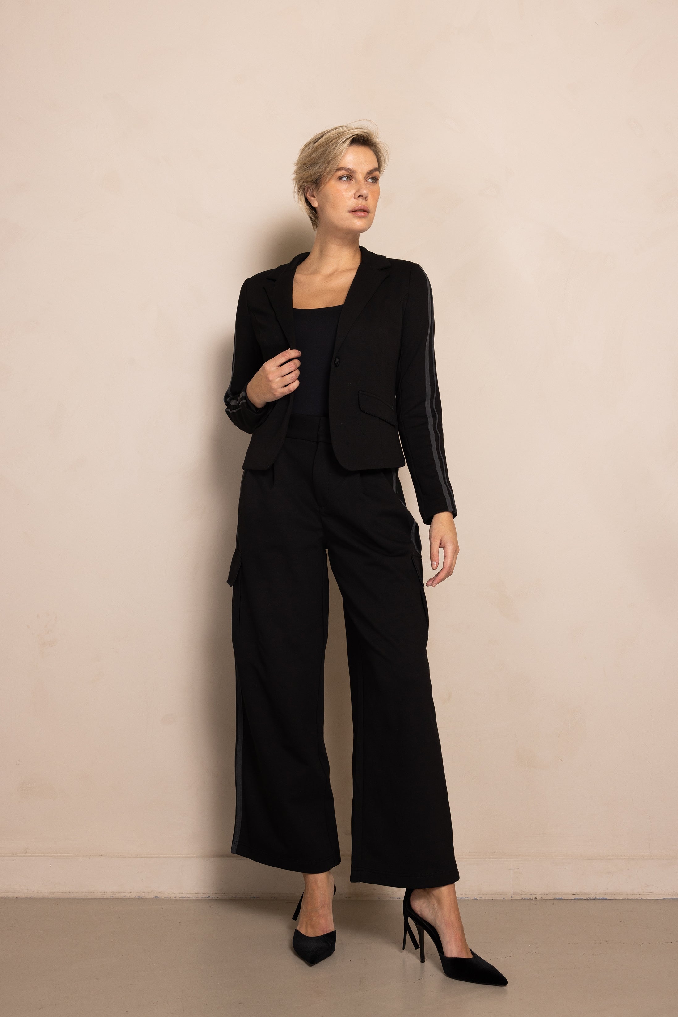 - Dezente Kontraststreifen entlang der Ärmel für einen sportlich-eleganten Look